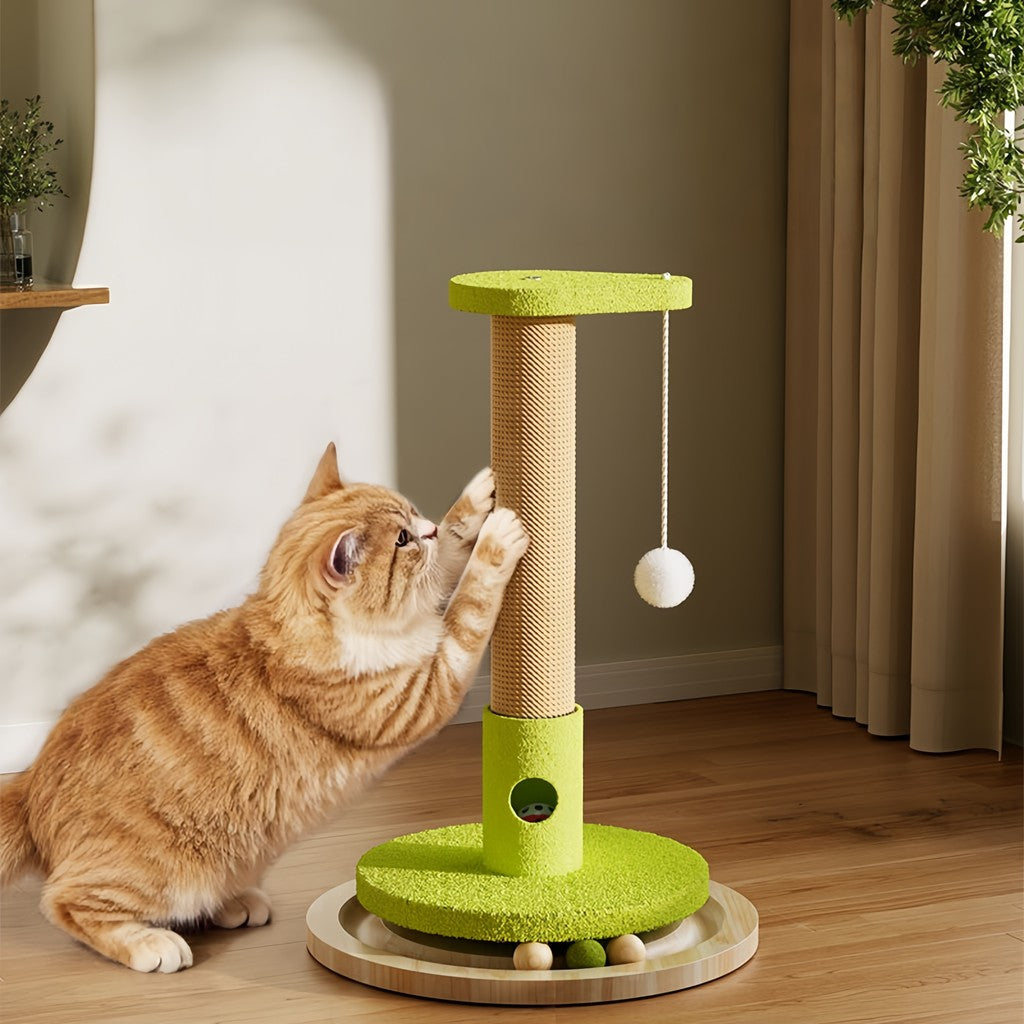 แผ่นไม้เนื้อแข็งหมุนได้ 🌀 พร้อมลูกบอลในตัว ช่วยกระตุ้นความสนใจในการเล่นของแมว