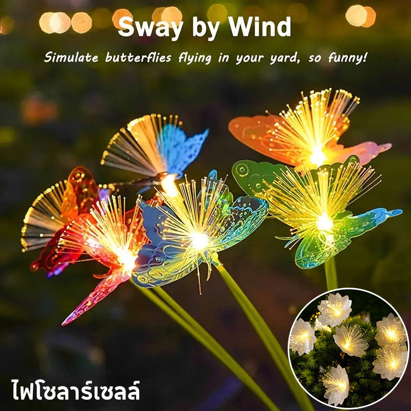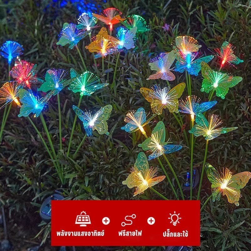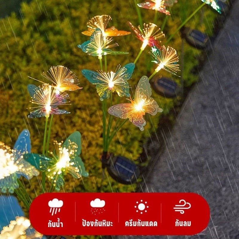ไฟสวนแสงผีเสื้อพลังงานแสงอาทิตย์ ใยแก้วนำแสง กันน้ำทนฝน ประหยัดพลังงาน สำหรับแต่งภูมิทัศน์