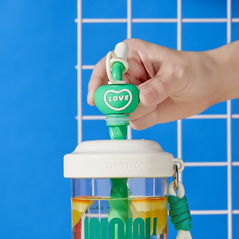 580mlแก้วน้ำพลาสติกแก้วกาแฟ สําหรับผู้หญิง แก้ว ความจุใหญ่ พร้อมฝาปิด พกพาง่าย