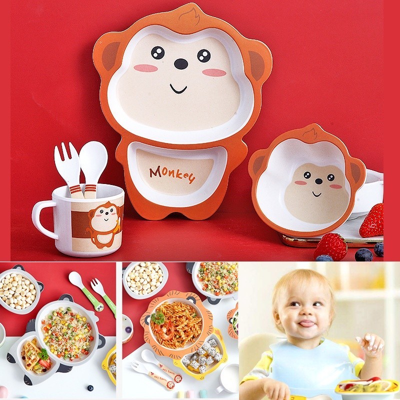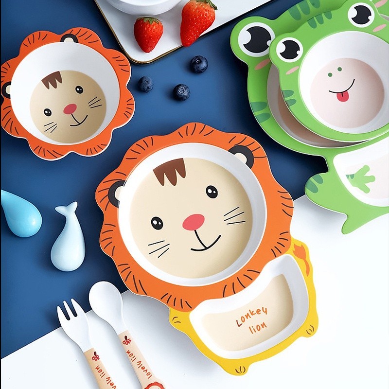 This children's dinnerware set is made from bamboo fiber, is safe, odorless, and available in a variety of styles.