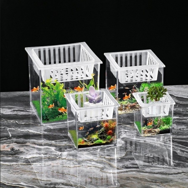 Small desktop aquarium made of acrylic material.
