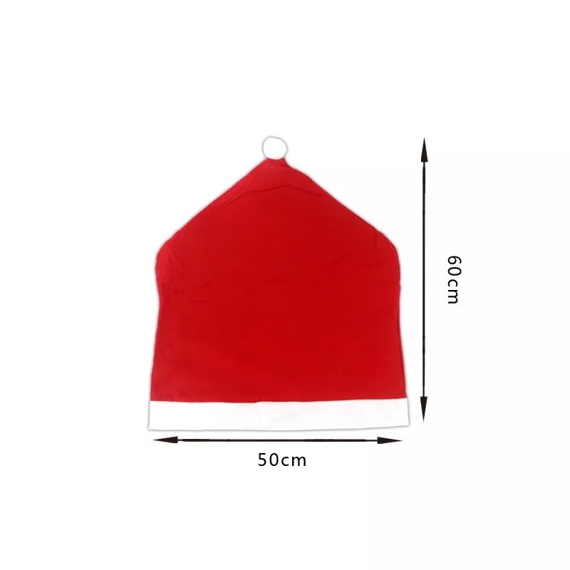 Red Santa hat patterned chair cover, Christmas decoration, creates a festive atmosphere.