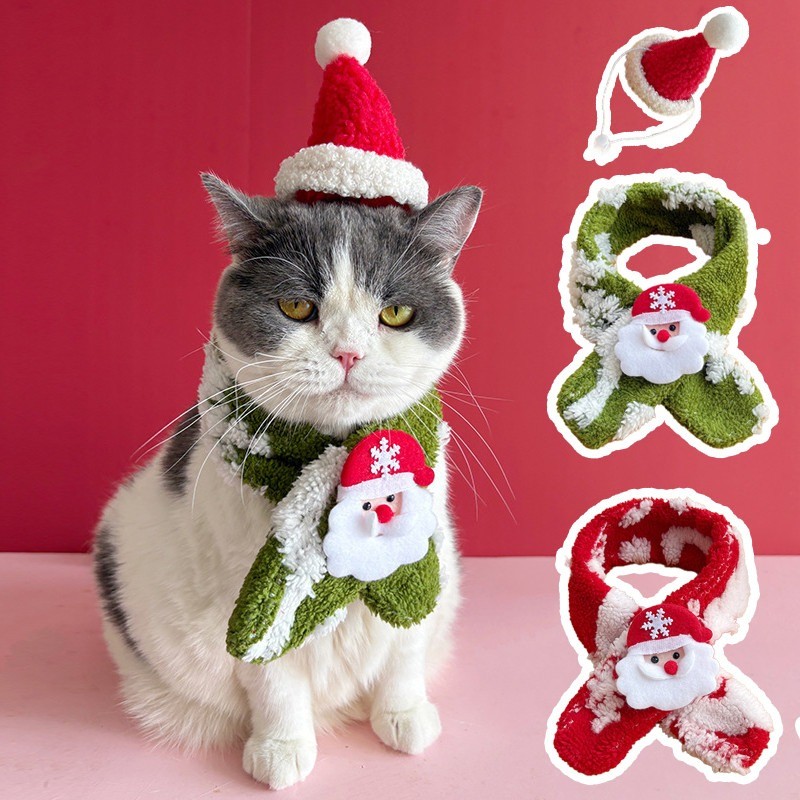 Christmas cat doll scarf, cute pet scarf necklace, Christmas gift.