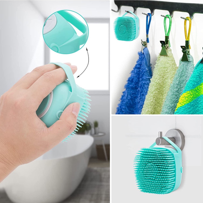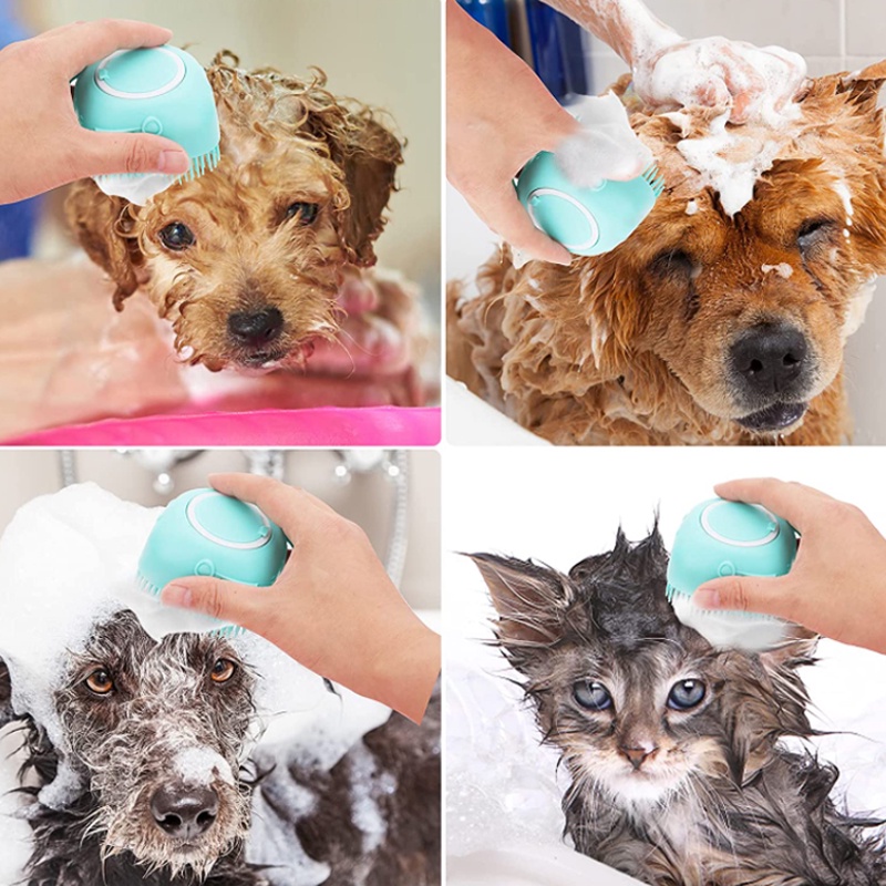 - This 2-in-1 pet bathing brush is convenient and practical, combining the functions of a bathing brush and a shampoo dispenser.