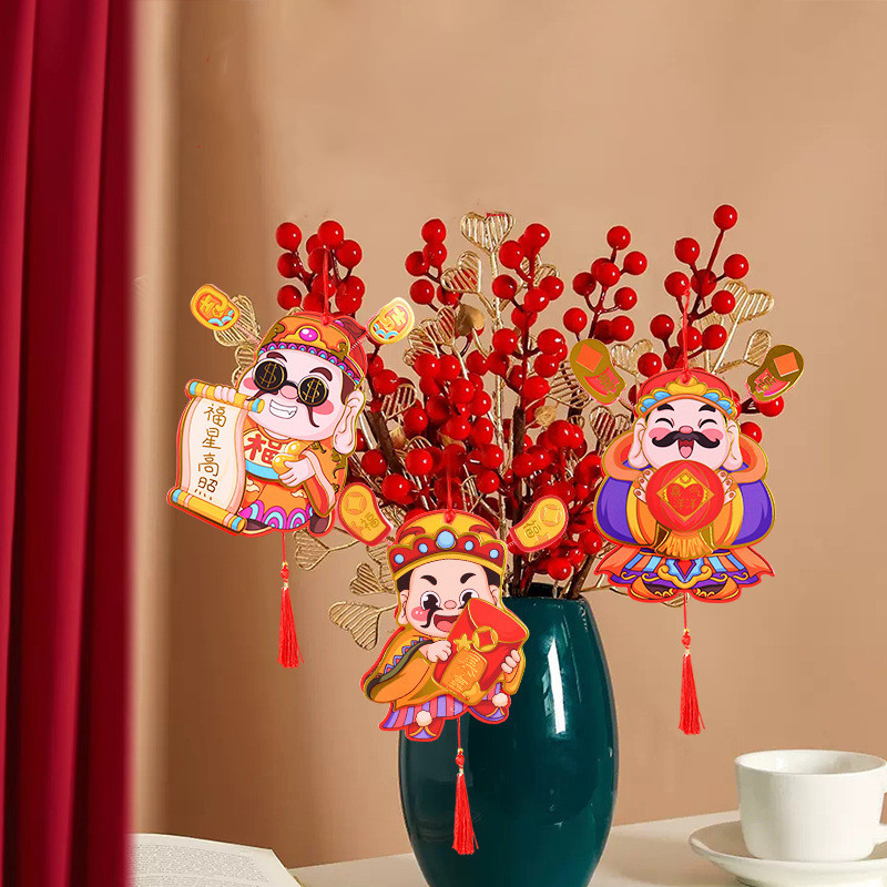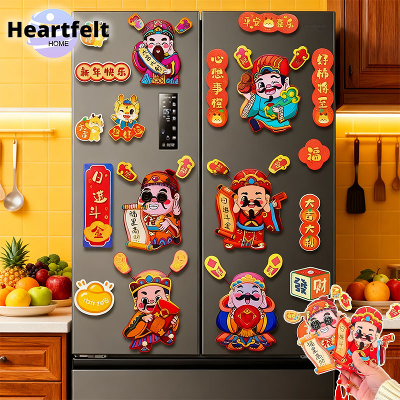 Refrigerator magnets are a popular New Year's decoration. They not only beautify the refrigerator but also add a joyful atmosphere. These products usually use magnets to firmly attach to refrigerator surfaces. Besides the traditional image of the God of Wealth, they are often adorned with beautiful tassels, adding charm and a more festive feel.