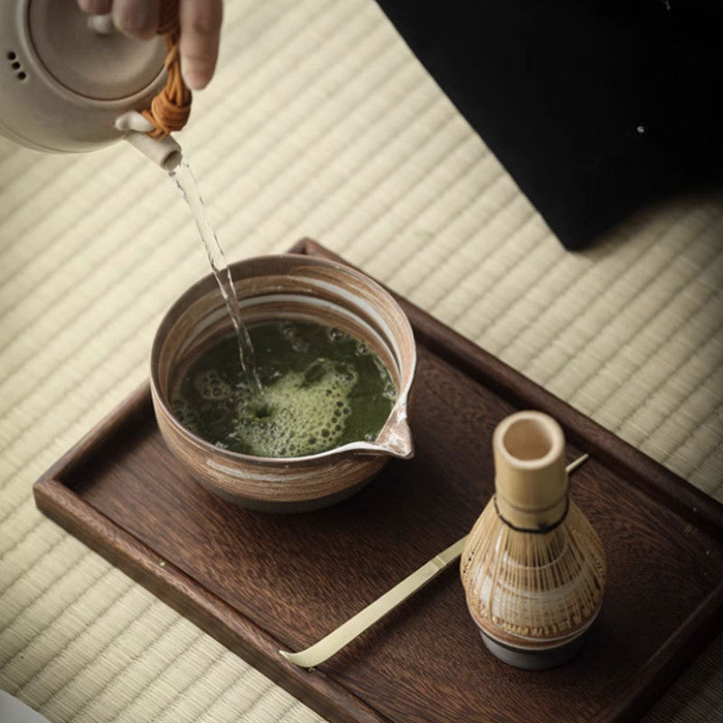 ชุดชงชาเขียวมัทฉะนี้ออกแบบมาโดยเฉพาะสำหรับผู้ที่ชื่นชอบชาเขียวมัทฉะ ประกอบด้วยเครื่องชงชาเซรามิกคุณภาพเยี่ยม 5 ชิ้น สำหรับพิธีชงชาเขียวมัทฉะแบบดั้งเดิม วัสดุเซรามิกมีความทนทานและเก็บความร้อนได้ดีเยี่ยม เหมาะสำหรับการชิมชาและการสาธิตพิธีชงชา