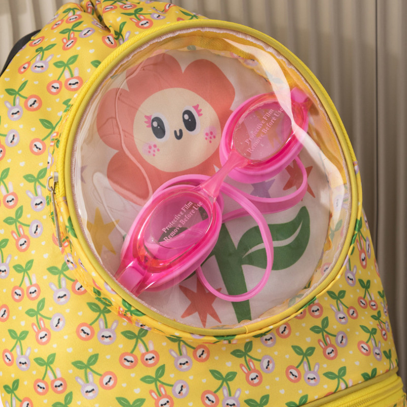 干湿区域分隔开来,内衬防水PVC材料。游泳后,可以将湿衣服分别存放在独立的干湿衣物袋中。