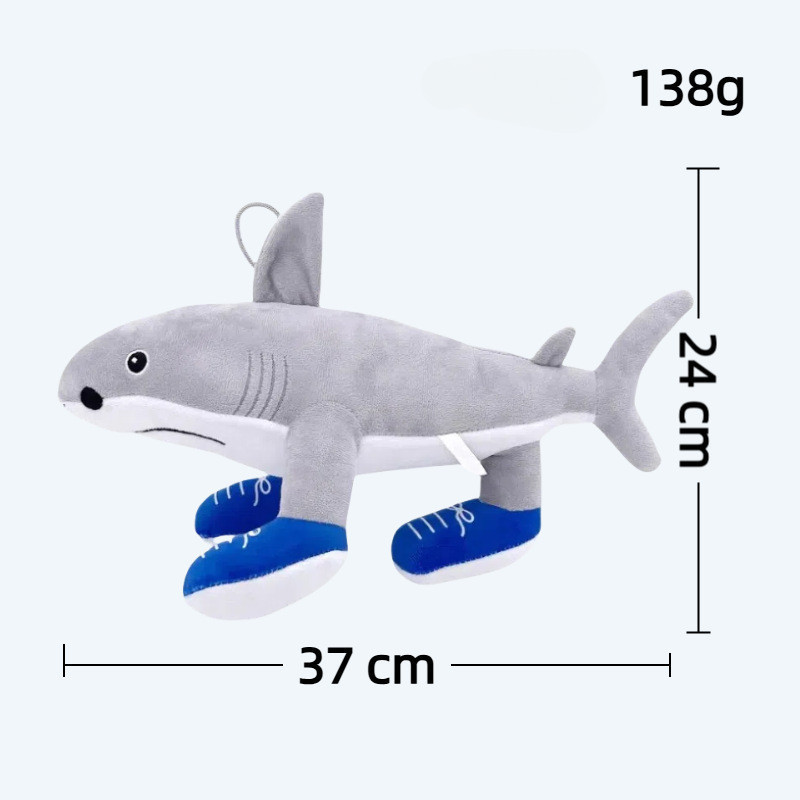 可爱的木制鲨鱼玩偶,柔软的毛绒玩具。