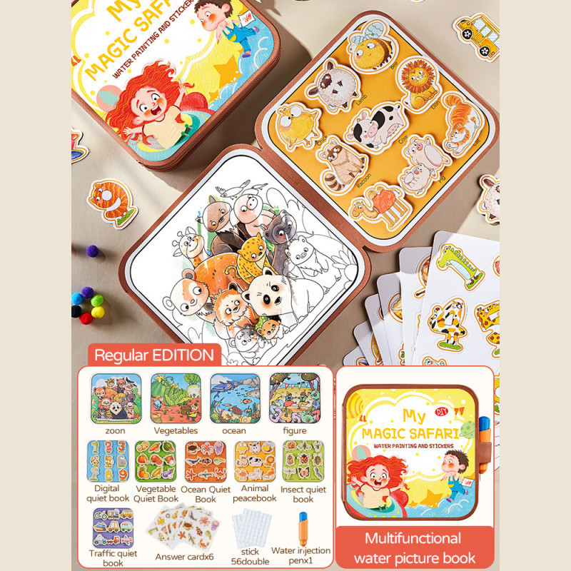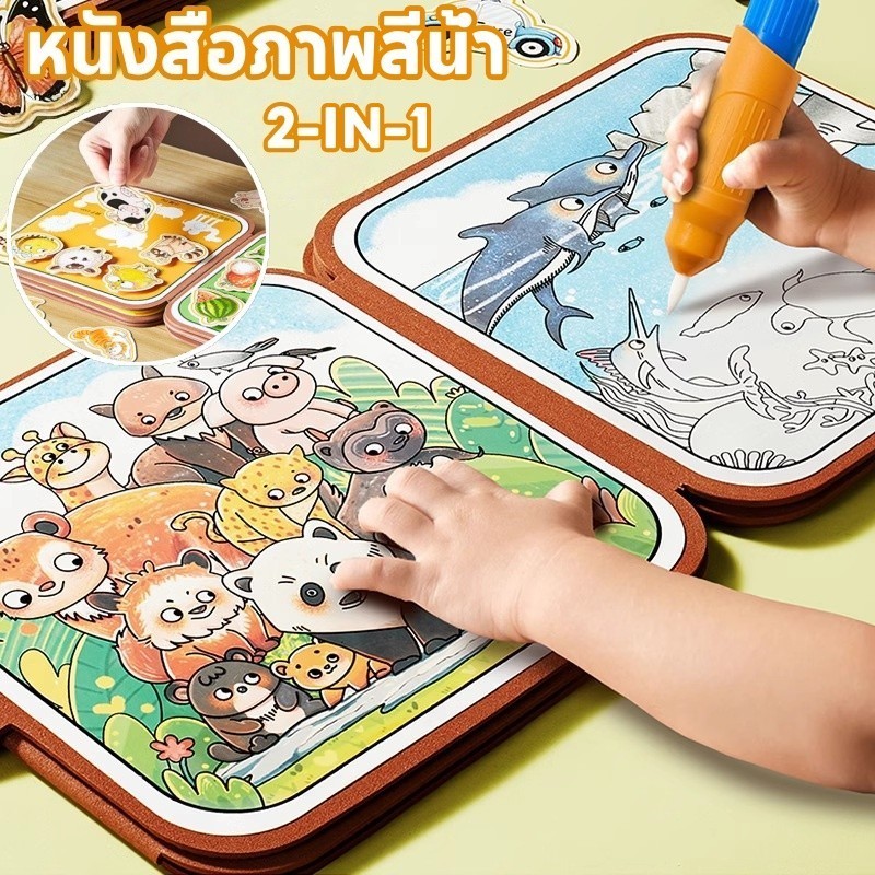 神奇水彩涂色书+二合一练习册:无需墨水!可重复使用的水彩涂色书,促进幼儿早期学习和发展。