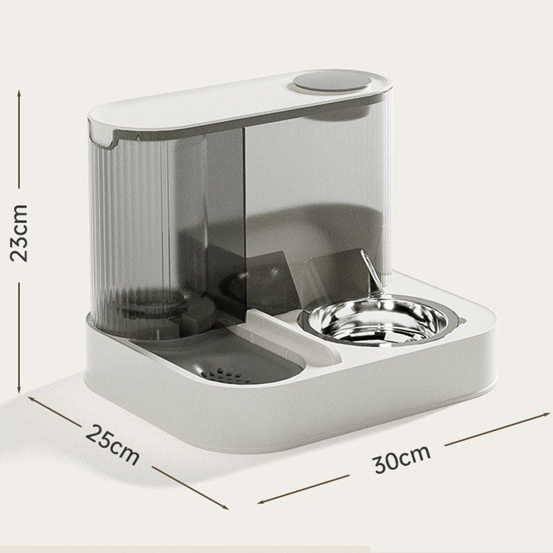 二合一自动宠物喂食器和饮水器,不锈钢材质。