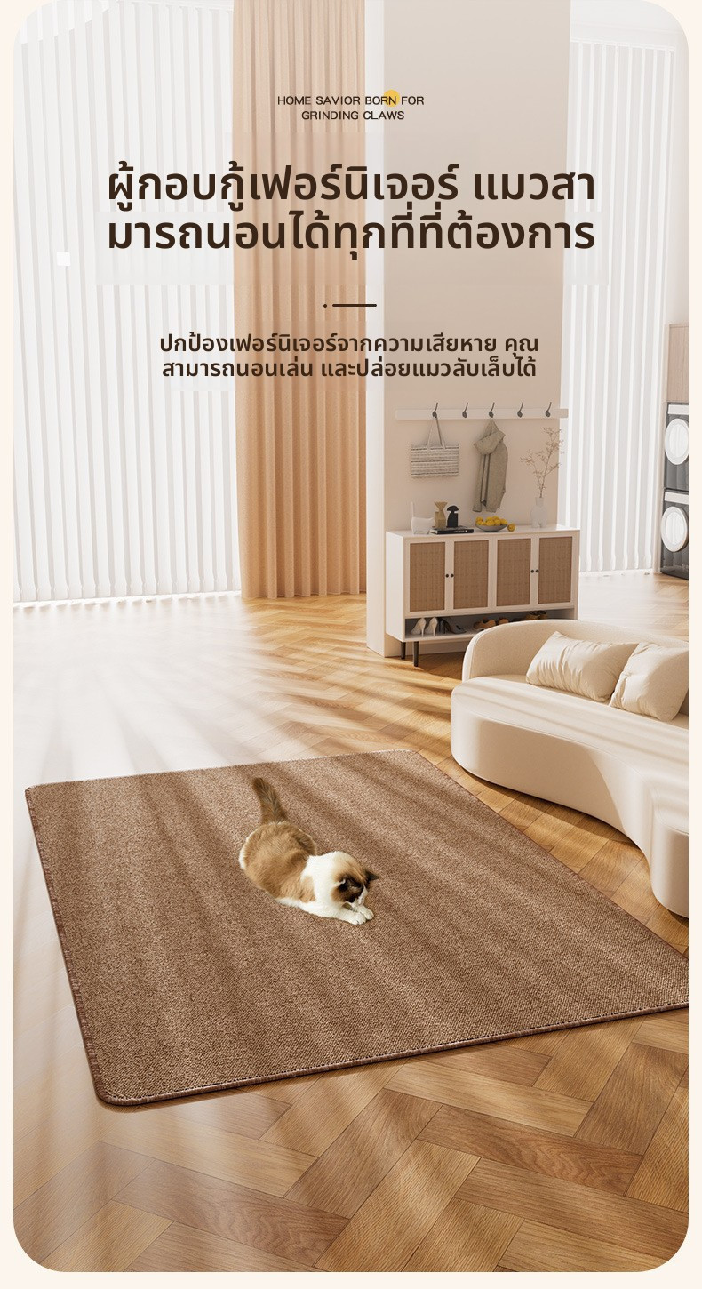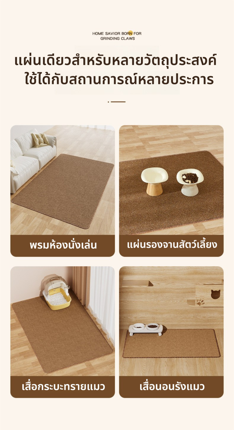 一块垫子,多种用途,适用于多种场景,可用作客厅地毯、宠物餐垫、猫砂盆垫和猫咪睡垫。