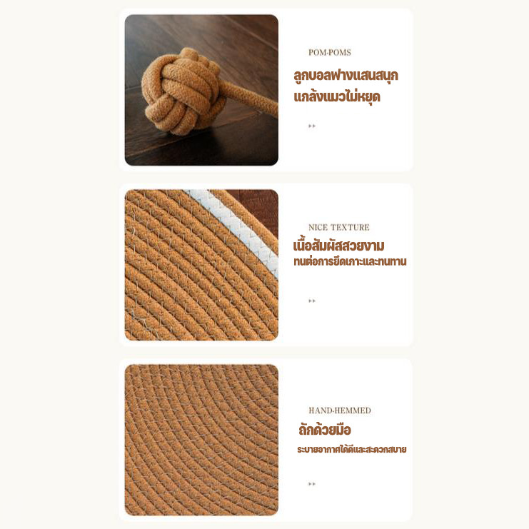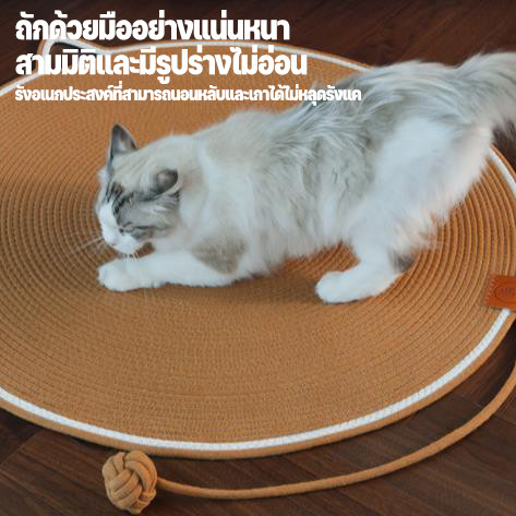 这款多功能猫抓垫采用柔软、耐用、防刮擦且不掉毛的棉线制成,配有圆形棉绳,深受猫主人的喜爱。